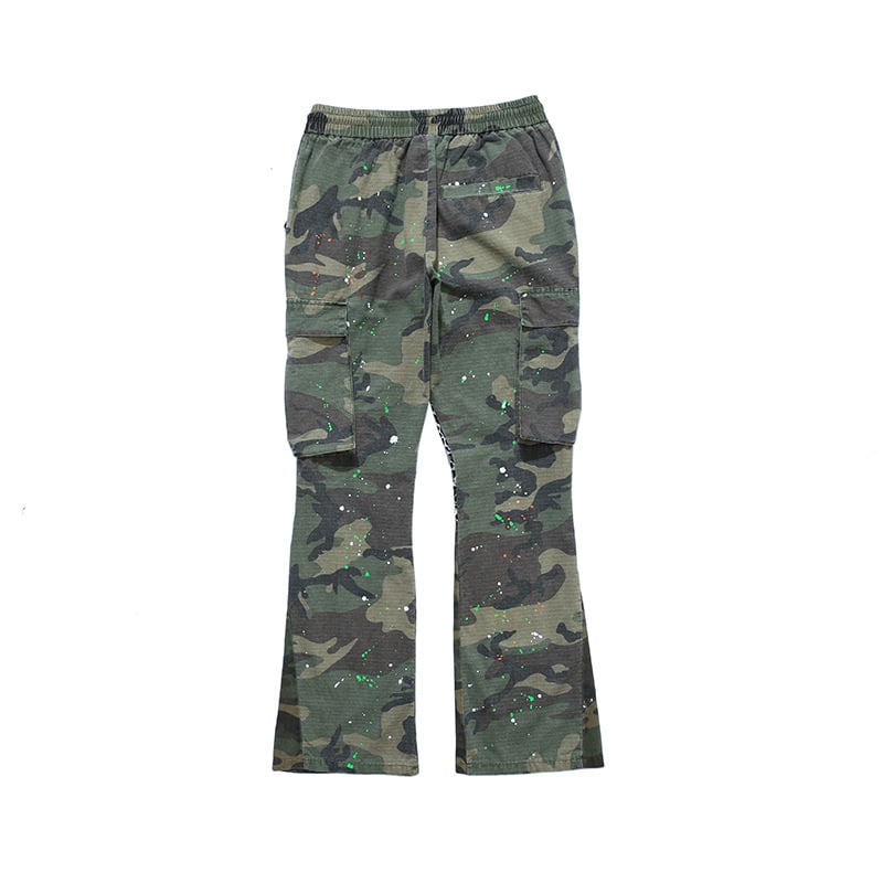 Camouflage Flared Straight Trousers for Casual Wear