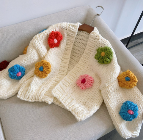 Harajuku Flower Cardigan Sweater for Women (Korean Y2K)