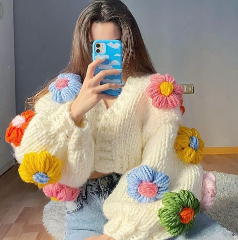 Embrace the essence of Korean Y2K streetwear with our adorable Harajuku Flower Cardigan Sweater. This sweet and cute long sleeve crop knit sweater is the perfect blend of style and comfort, making it an essential piece for your autumn and winter wardrobe.